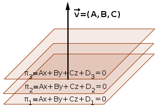 Un conjunto de planos paralelos tienen todos el mismo vector normal y por tanto tendrán los mismos coeficientes de x,y,z en su ecuación general