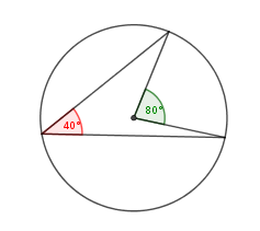Si los ángulos central e inscrito abarcan el mismo arco de circunferencia, entonces se cumple que el ángulo central es el doble que el inscrito