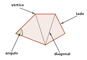 Elementos de un polígono: lado, ángulo, vértice, diagonal