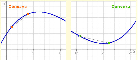 Cuando el segmento queda por encima de la gráfica, la función es convexa en dicho intervalo.