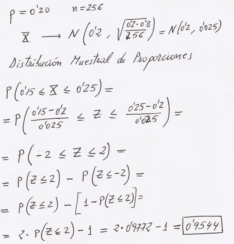 y el resto no. Tomamos una muestra de 256 personas. ¿Cuál es la probabilidad de que el