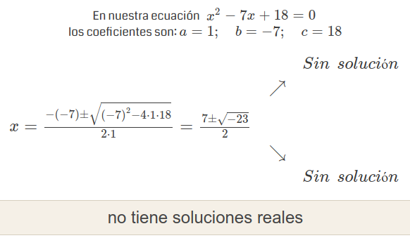A continuación mostramos la resolución de la ecuación de segundo grado: