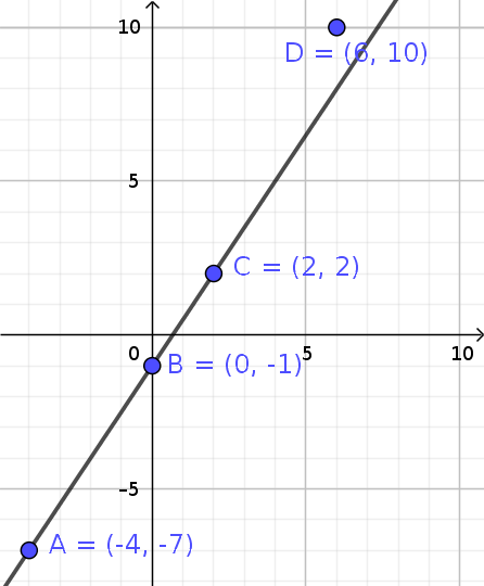 El punto D no la cumple, por tanto el punto D no está alineado con A,B y C