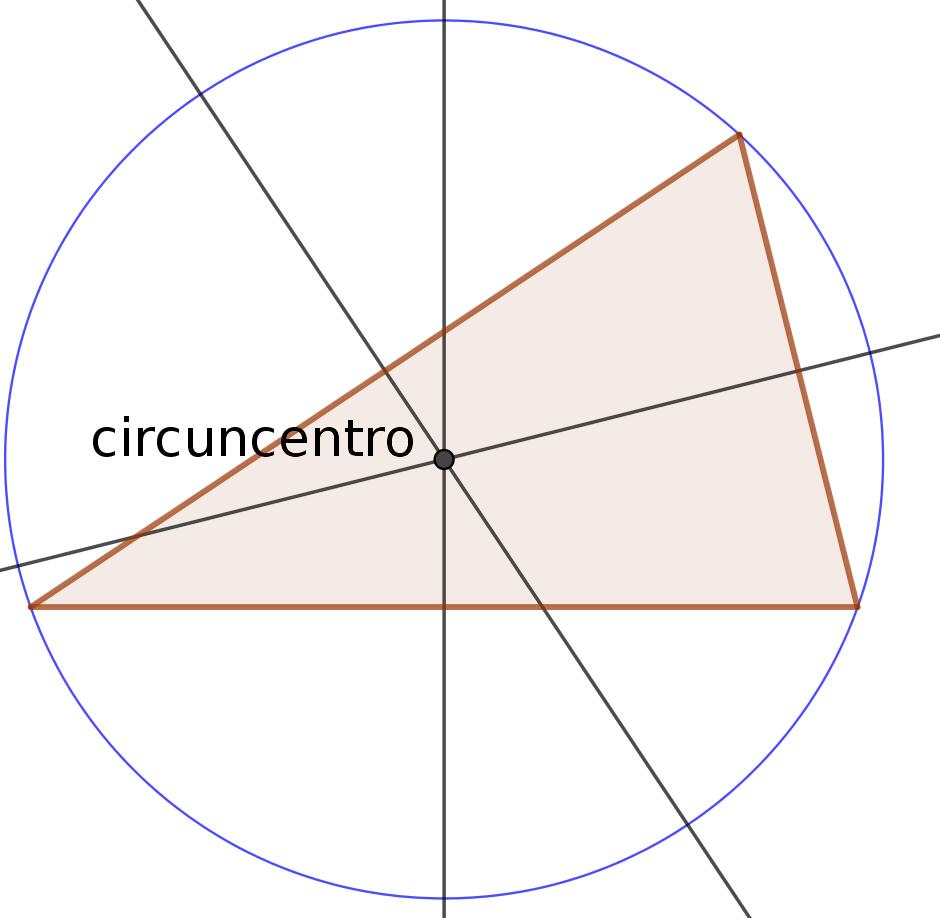 Las mediatrices de los 3 lados se cortan en un punto llamado circuncentro