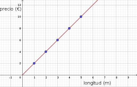 Queremos comprar una cinta que vale a 2 euros el metro. Representa gráficamente lo que tendremos que pagar según los metros que compremos.