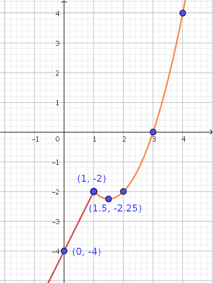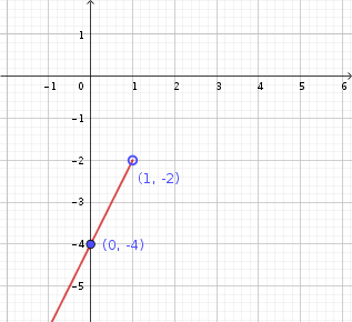 Podríamos tomar los puntos x=-2 y x=0 por ejemplo, pero para obtener una mejor gráfica es recomendable tomar el punto (x=1) donde acaba su dominio y lo dibujaremos como "punto hueco" porque ![]()
