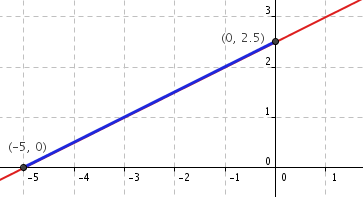 Por tanto los puntos son (0, 2.5) y (-5,0)