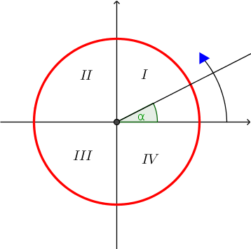 Se usa para estudiar las razones trigonométricas. Los ángulos se miden desde el eje positivo de abcisas y en sentido anit-horario.