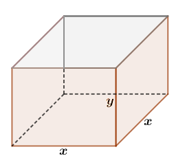 b) Encuentra la expresión que represente la superficie (4 lados + fondo) y la igualas a 1 (puesto que disponemos de 1 metro cuadrado de cartón)