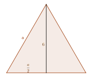 Calcula el lado de un triángulo equilátero, sabiendo que su altura es 6 m.