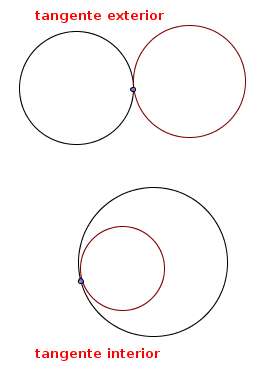 – Circunferencia tangente exterior a otra: tienen un único punto en común y el resto de puntos son exteriores a la otra.