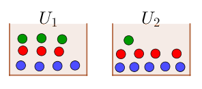 4 bolas azules, 3 bolas rojas y 3 verdes, en la urna