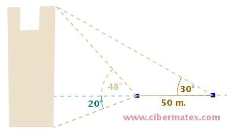 Problema Trigonometría - Altura de torre de base bajo la horizontal problemas trigonometríatrigonometría Calcula la altura de la siguiente torre: Comentar el ejercicio