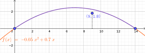 Para justificar que la pelota pasa por encima, tenemos que demostrar que la función en el punto x=9 es mayor que 1.8