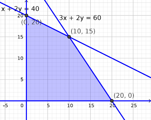 Encuentra en qué punto de la región limitada por las inecuaciones anteriores se hace máximo la función ![]()