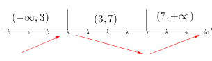 Comprobamos en cada intervalo si la función crece o decrece (tomando un punto de cada intervalo y verificando el signo de la derivada)