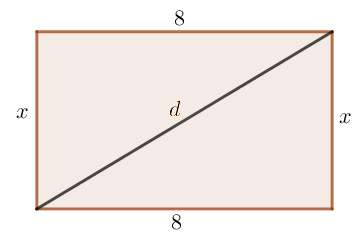 Calcula lo que mide la diagonal de un rectángulo sabiendo que uno de sus lados mide 8 cm y que su perímetro es de 30 cm