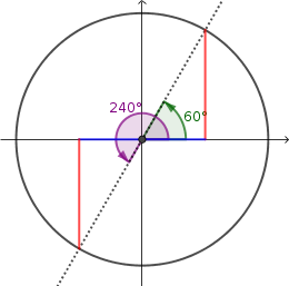 Los ángulos 240 y 60 tienen iguales senos (pero de distinto signo) e iguales cosenos (también de distinto signo).