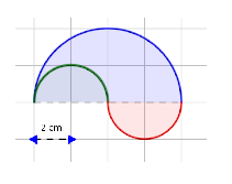Como los semicírculos verde y rojo son iguales, el área será el semicírculo grande azul (que tiene de radio 4 cm)