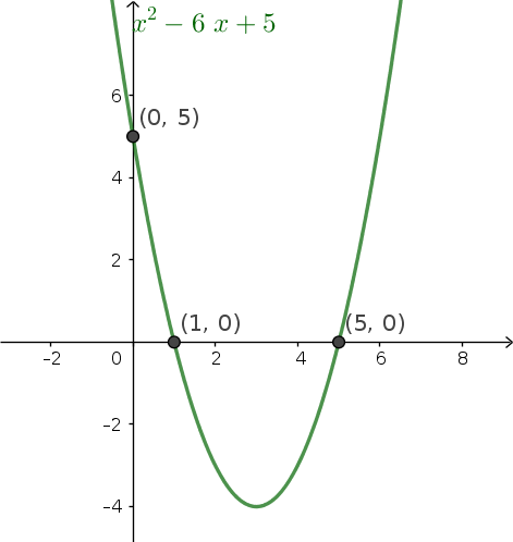 Puntos de corte de y=x²-6x+5 con los ejes de coordenadas