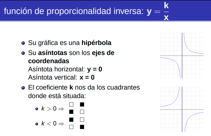 es una función de proporcionalidad inversa (dentro del grupo de funciones racionales).