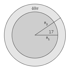 Queremos construir una acera alrededor de un parque circular. El diámetro del parque es de 34 m. Si el área de la acera es