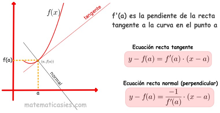 La derivada de una función en un punto es la pendiente de la recta tangente a la función en dicho punto.