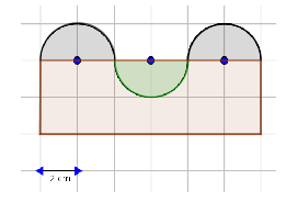 Área del rectángulo (borde rojo) - Área semicírculo (verde) + 2 · Área semicírculo (gris)