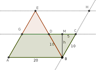 La base mide 20. Nos falta calcular la altura, que coincide con la altura del triángulo