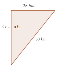 Los trenes A y B parten de la misma ciudad al mismo tiempo en direcciones perpendiculares. El tren B viaja 5 km/h mas rápido que el tren A. Al cabo de 2 horas se encuentran a 50km de distancia. Halle la velocidad de cada tren.