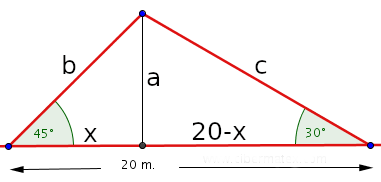 Es un problema clásico que se resuelve con un sistema de ecuaciones (usando las tangentes).