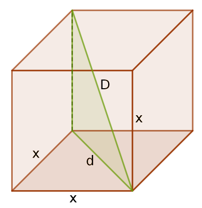 En primer lugar hacemos un dibujo de un cubo de lado "x", en el que se muestren ambas diagonales: