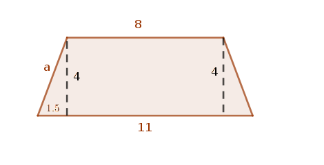 Calcula el perímetro de un trapecio isósceles de bases 8cm y 11cm sabiendo que su altura mide 4 cm