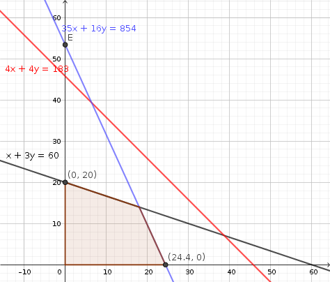 Para calcular el beneficio máximo aplicamos la función objetivo a los 4 vértices