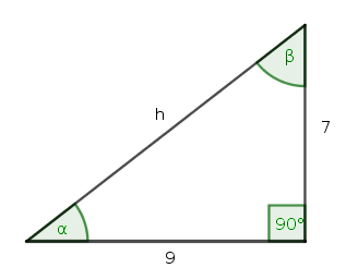 Razones de todos los ángulos de un triángulo rectángulo de catetos 7 y 9