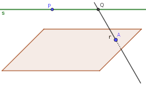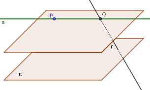 Me piden la recta (en verde) s que pasa por P, es paralela al plano y corta a la recta r