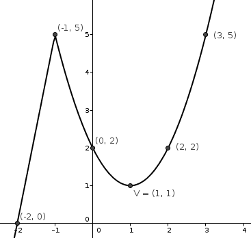– (a) Dibujamos la función a trozos: un trozo es una recta (que llega hasta -1) y el otro trozo es una parábola (desde -1 en adelante).