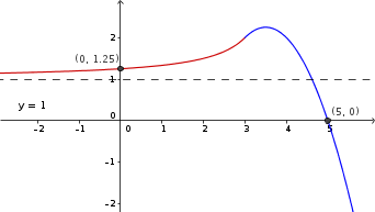 La solución x=5 si nos vale. Corta en el punto ![]()
