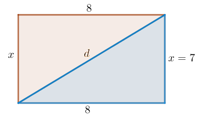 Calcula lo que mide la diagonal de un rectángulo sabiendo que uno de sus lados mide 8 cm y que su perímetro es de 30 cm