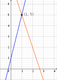 Vemos que se cortan en el punto (1,5)